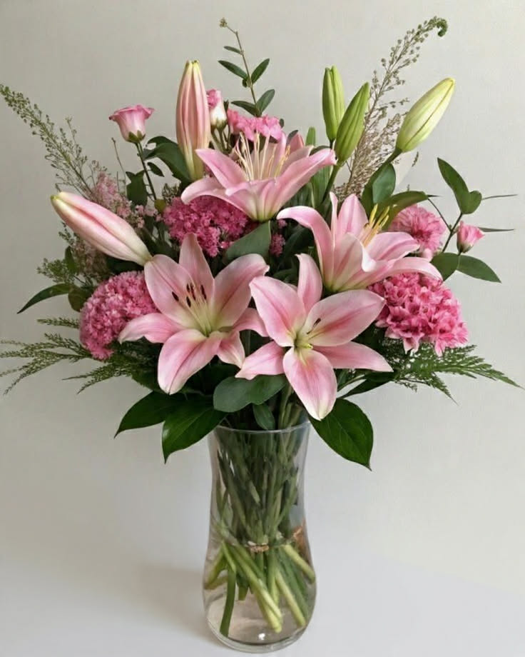 Blómvöndur er gerður úr þeim blómum sem valin eru þá vikuna af blómaskreyturum okkar.