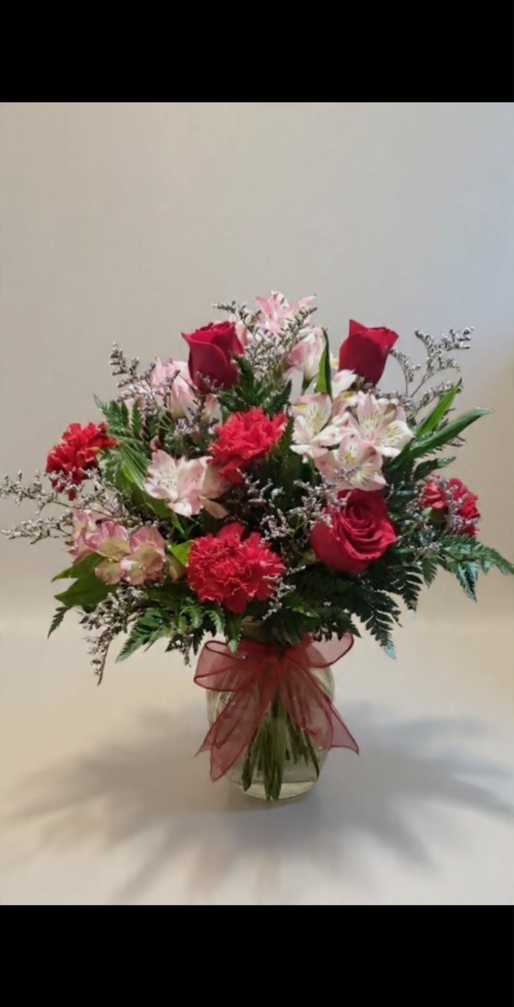 Blómvöndur er gerður úr þeim blómum sem valin eru þá vikuna af blómaskreyturum okkar.