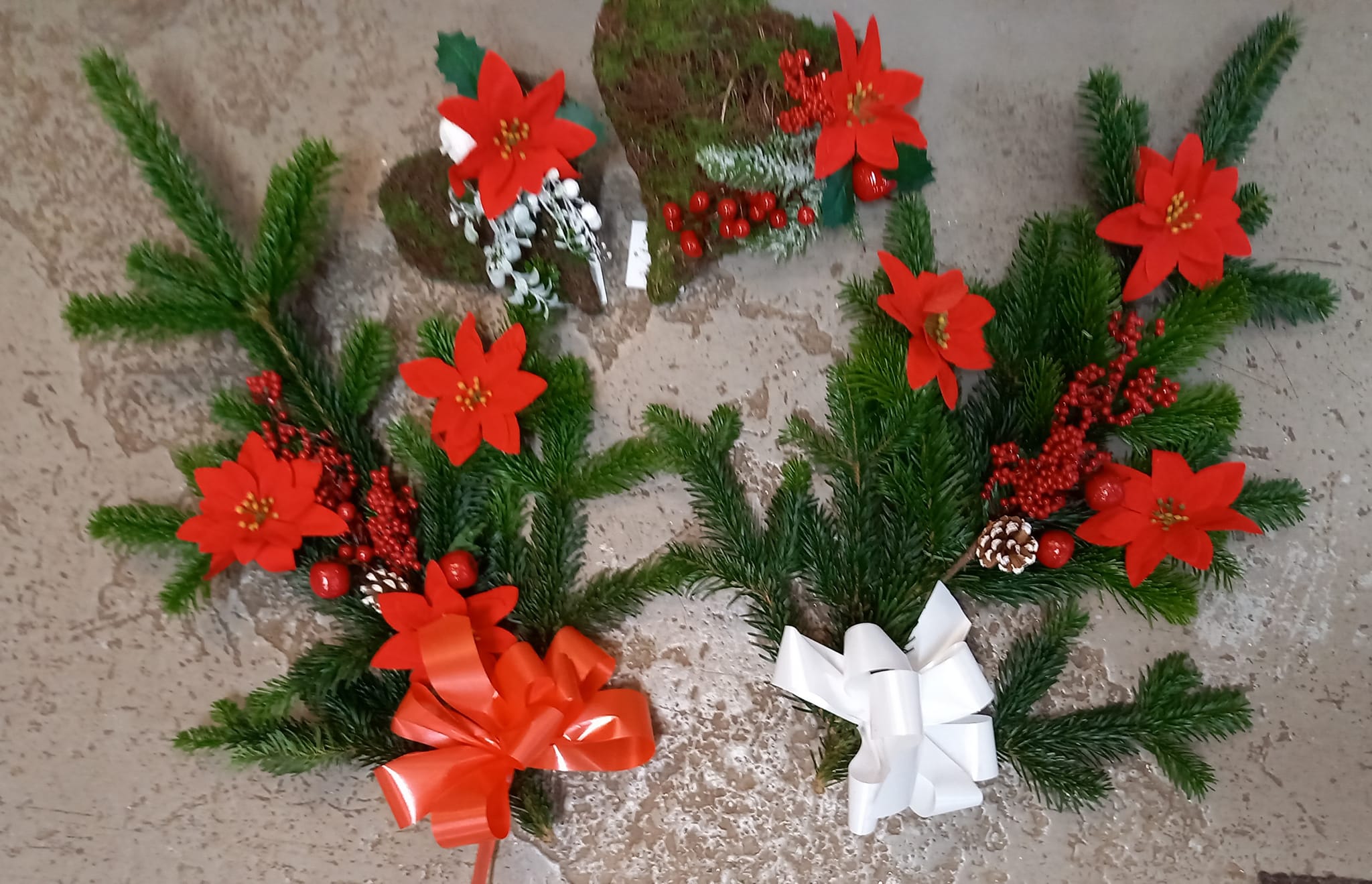 Skreytingin er gerð úr þeim efnum sem valin eru þá vikuna af blómaskreyturum okkar og er stílað á að nota áþekk efni og myndin sýnir í stað þeirra sem ekki eru til ef svo ber undir.